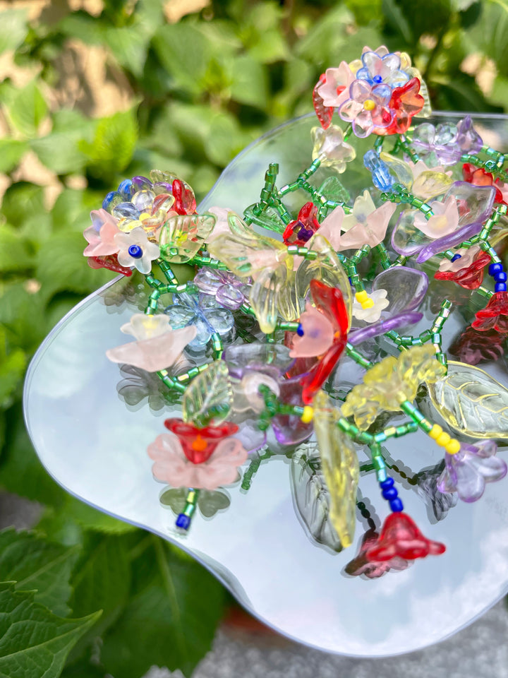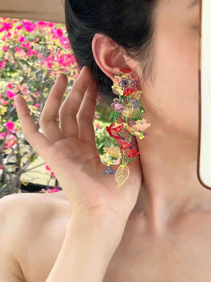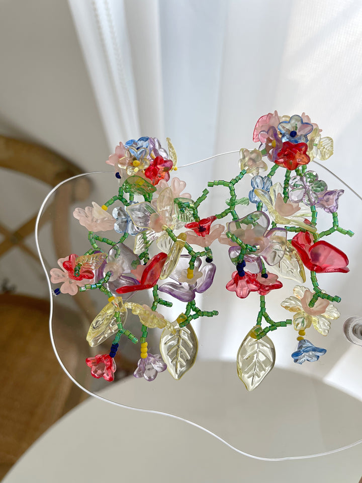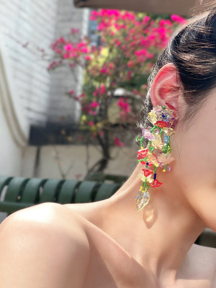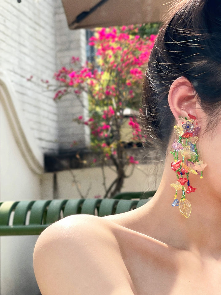 彩色花朵水晶流蘇 耳環